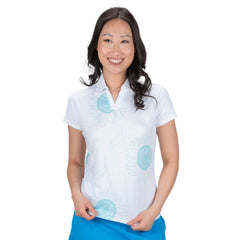Embrace the sun in style with the Sunny Short Sleeve Polo. This polo, constructed from a sleek polyester/spandex blend, features DeLux Dri‚Ñ¢ moisture-wicking technology to keep you cool and dry on the course. With UPF50+ sun protection, it shields you from harmful rays, while the self-collar and shirring detail at the V placket add a touch of elegance. The engineered print at the front and back offers a modern flair, and the signature Lopez Flame icon on the right hip signifies your commitment to performance and style. This polo combines function and fashion seamlessly for a round of golf or a sunny day out.